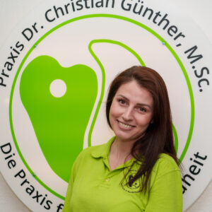 Hier konnte ich meine Ausbildung zur zahnmedizinischen Angestellten erfolgreich absolvieren. Mein Tätigkeitsbereich umfasst die Prophylaxe, die Assistenz bei der zahnärztlichen Behandlung, sämtliche Tätigkeiten rund um die Hygiene, Röntgen, Labor und auch Verwaltung.